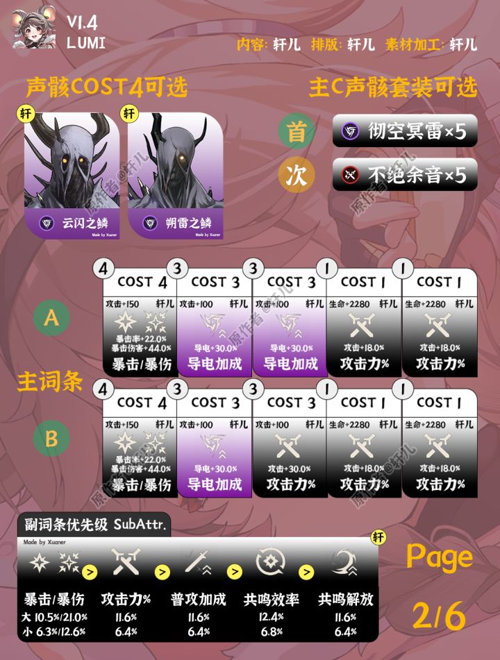 V1.4下半四星角色灯灯上线,快来上线鸣潮抽卡啦。本期攻略给大家带来灯灯的全方位培养攻略,灯灯是四星导电长刃角色,主要定位是主C,如果可以入手6链灯灯,可以额外获得20%攻击力加成,可以作为副C使用。两种玩法声骸词条有所不同,详细见图文内容,主C注重双爆攻击力,副C要稍微考虑下充能。主C主要靠普攻输出,因此推荐抽取4链。主C可搭配吟霖或散华,副C可以搭配今汐长离等。