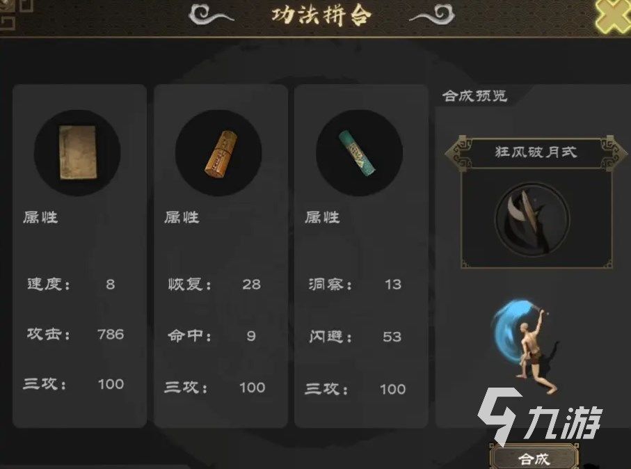 以上就是眼下剑雨如歌武功合成攻略的主要思路,第一本用高攻的,例如《海外西经》,第三本用高闪避的,例如《海内经》《吕氏春秋》,中间的则按需选择,大多时候倾向于选加命中的,例如《周易参同契》,选择面很广,大家只要遵循这个规律即可。