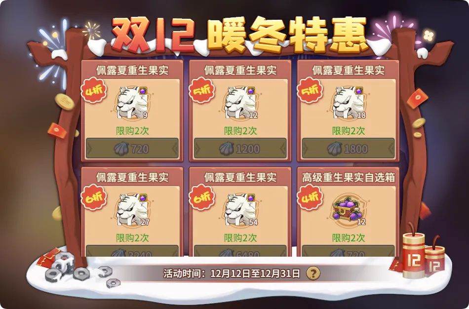 临近“双十二”,也特此准备了【暖冬特惠】礼包,折扣低至4-6折,超值礼包不容错过。