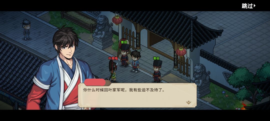 做异性封王成就的时候,接了灭亡叶家军的任务,去大营杀完后发现就差一个叶银屏,然后跑去做了楚襄英雄会任务找她,然后就是上图的剧情了,主角说“你什么时候回叶家军呢,我有些迫不及待了”