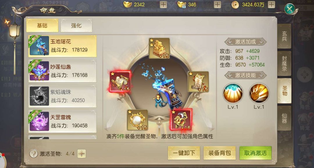 每个角色初始能激活3个圣物,通过消耗“圣物召令”能开启额外的圣物槽位,同时激活更多的圣物。