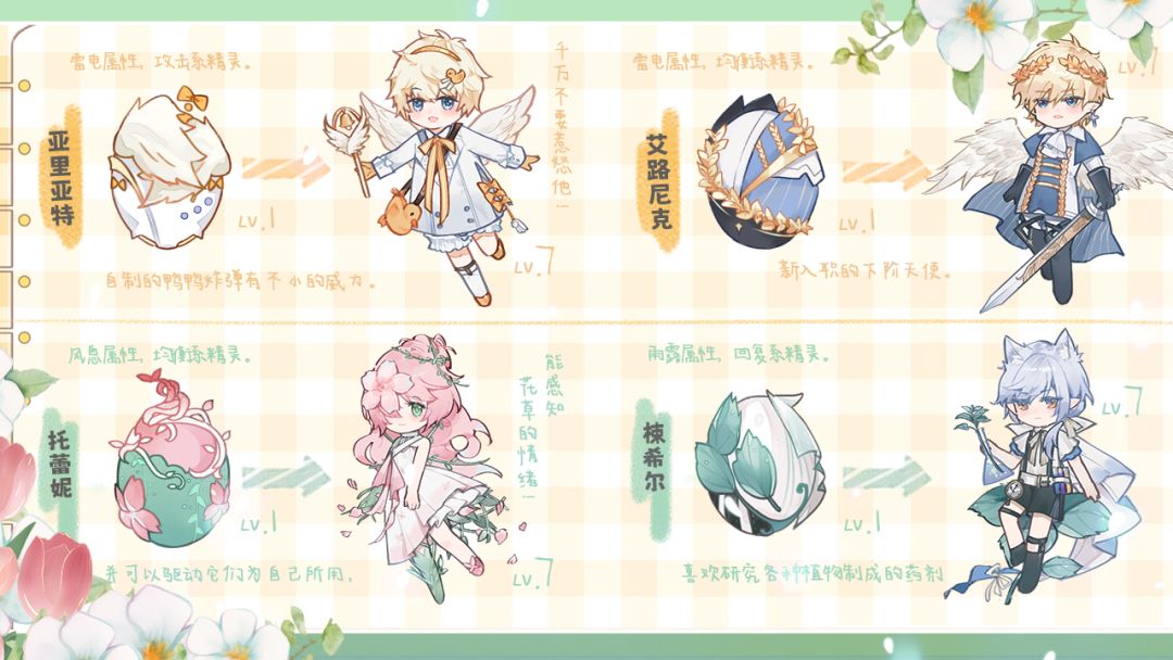 ⭐不同岛屿孕育孵化出各自的守护精灵,提升等级改变精灵外貌、属性。