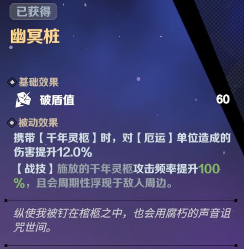 在有魂器的情况下,棺材的初始被动便可以常驻两层(32%奥义增伤),且会给敌人上厄运debuff