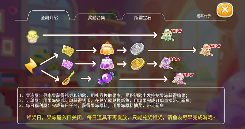 3、领奖日果冻屋关闭,只能兑换领奖,大家获取的道具要及时使用完毕;