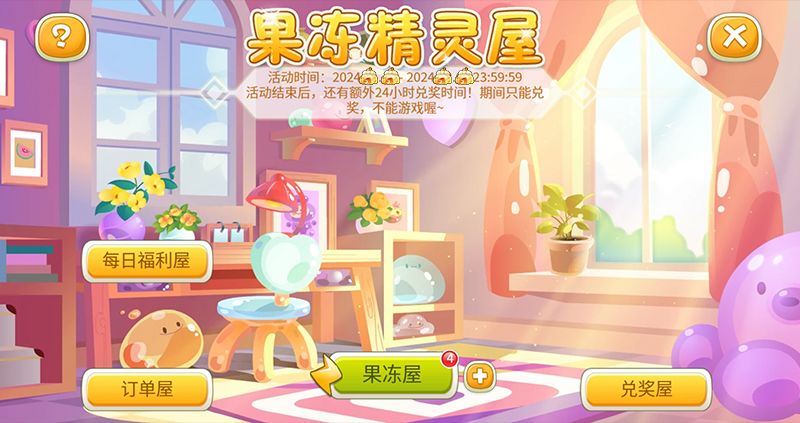 1、本活动分为四部分:每日福利屋、果冻屋、订单屋、兑奖屋;