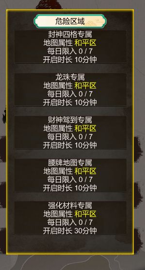 获得各自材料,签到刷次数,活动期间可额外多进入一次。其中龙珠地图的金币收益极高,适合日常刷取。