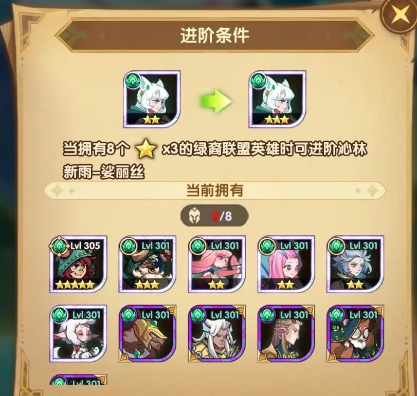 简单理解就是一个种族拥有5张白卡即可解锁该种族的SP英雄。目前只有半神-SP凤凰&绿裔-SP狐狸。SP英雄升阶条件整理如下,SP英雄解锁需要5个同族白卡,SP英雄升1星需要5个1星同族白卡S,P英雄升2星需要5个2星同族白卡,SP英雄升3星需要8个3星同族白卡。