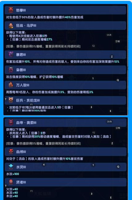 ①需要续盾,可将右下角小格天赋更换为狼血·巴维尔