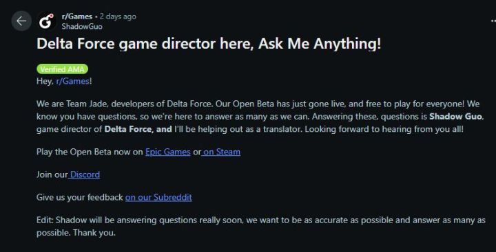 近日,Reddit 玩家社区向《三角洲行动》的游戏总监 Shadow Guo 询问,是否会在游戏中加入“大逃杀”模式。对此,该总监当即否定了这一想法。