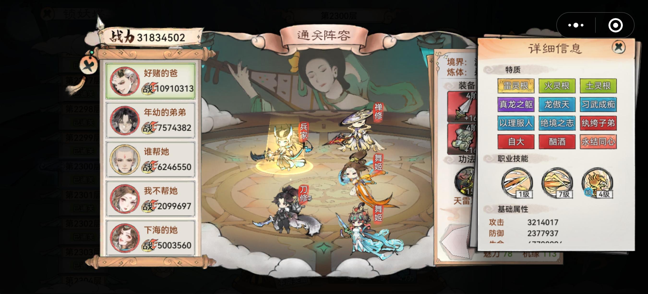 正文:在确定开局板与终结方式我们就可以微调我们的数据了,我在确认我龙人两次变身打不死后就已经锁定龙人数据不动,斩杀点就是卫寒第二次法宝,后面也带过狂龙,鸣金等,提升了伤害导致提前进入凤凰二阶,后面就慢慢微调降低伤害,好多次都是一刀没砍死,或者还没砍就死了,多注意法宝条,相差一两个回合的伤害基本就确定板子思路正确了,剩下的就是多凹。