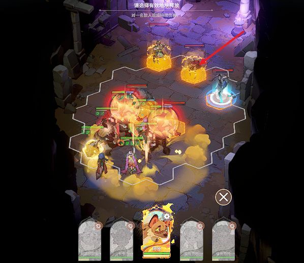 比如这一关,敌方有骨王,如果自动释放大招的话,阿德会先大骨王,导致无法击杀回能。那么就可以把阿德头上的小齿轮关掉,等他亮起来的时候,点击阿德,再选择敌方的后排输出。