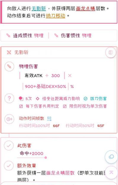 无影斩自带2000命中,300蓝耗,其伤害在命中buff的加持下相当于裸放霞雪的4/5.但是恒吃近伤可以在10m使用,非常安逸,但是如果是命中套,霞雪也能命中时就显得十分鸡肋了,可有可无的一个技能。