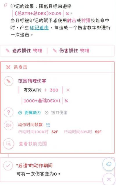 因为火线和退身击在弓箭和弓拔上倍率相同,所以理论上可以完全当成没有星坠的弓箭来玩,甚至在弓箭穿上弓拔的装备后伤害反而没有弓拔高。但是由于火线本身比较拉跨,只适合需要灌伤害时使用,退身可以配合箭雨玩,但是很吃叠伤。最大的功能是提供印记buff