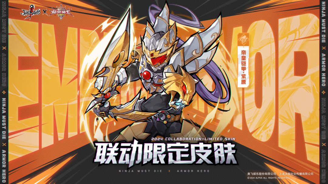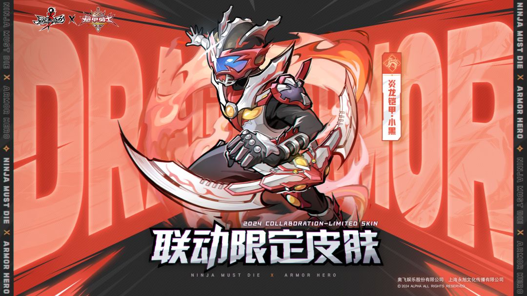 《忍者必须死3》×《铠甲勇士》联动皮肤将在12月19日正式上线,两款铠甲造型携光影之力震撼降临,炎魂·小黑联动限定皮肤「炎龙铠甲」可通过活动免费获得!