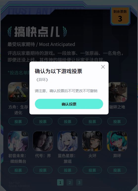 亲爱的鉴定师们,《异环》正在参加2024 TapTap 年度游戏大赏”搞快点儿”奖的评选!