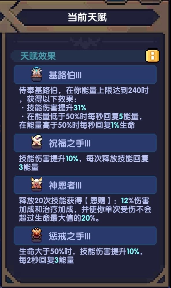 因为木牧组队其实就一个激荡需要快速冷却,其他技能都是开关,故而不带该天赋,直接靠自然冷却,然后多带输出天赋