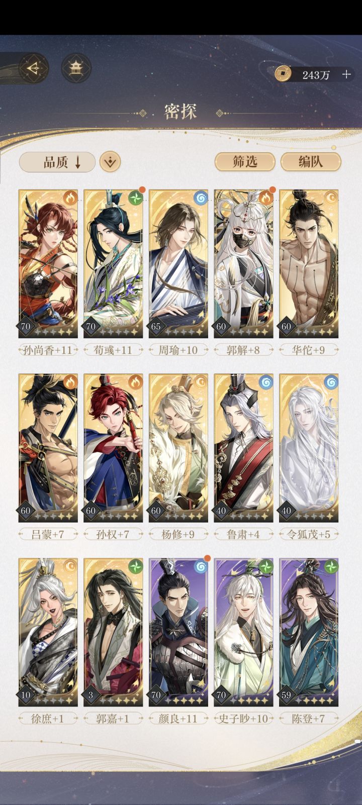 蔡琰要不要抽a,目前有的密探如图