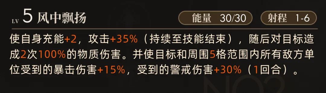 接着咱们就顺势来说技能部分,刚刚也提到了1技能【风中飘摇】可以提供2点充能,同时在这个技能的过程中可以提升部分攻击力。