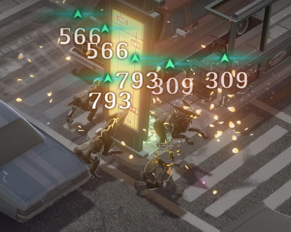 接着经过实测,大家可以看到上面的实战图,因为这个2技能的描述是每个目标使该伤害-10%,但是如果实战中就拿只有2个敌人的案例来看,其实准确的描述应该是“每次弹射使该伤害-10%”,大家也可以从上图中看到弹射到同一敌人身上的伤害每次都是降低的。