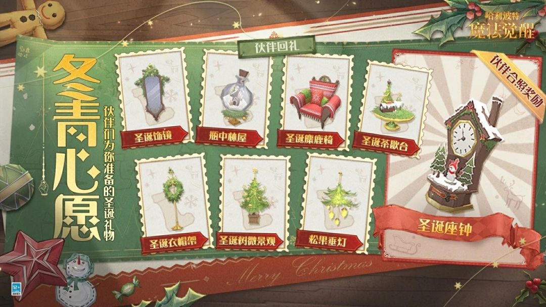 活动期间,巫师可前往霍格莫德村为伙伴们准备圣诞礼物,收到心仪礼物的伙伴们将在12月25日0点后为你准备精美的圣诞家具作为回礼,在圣诞节后与伙伴进行合照还可获得额外家具!
