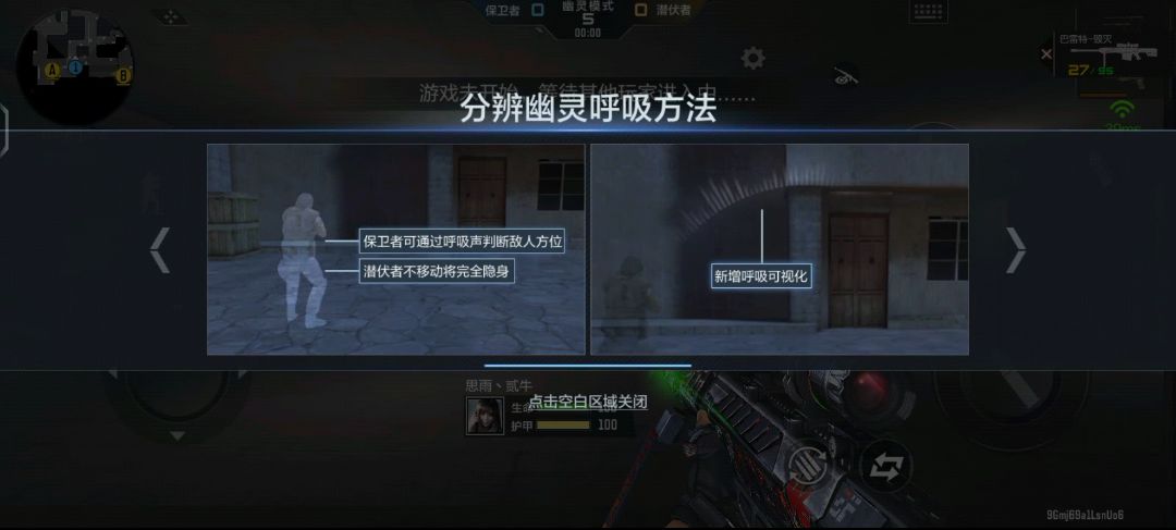 同时,中路也可躲在中门后防守,偷袭从中门经过的敌人,但是幽灵方的鬼跳很难分辨方位,只能通过观察呼吸可视化的标志,然后火力覆盖,有可能会提前暴露,需要玩家有足够的定力和耐心。