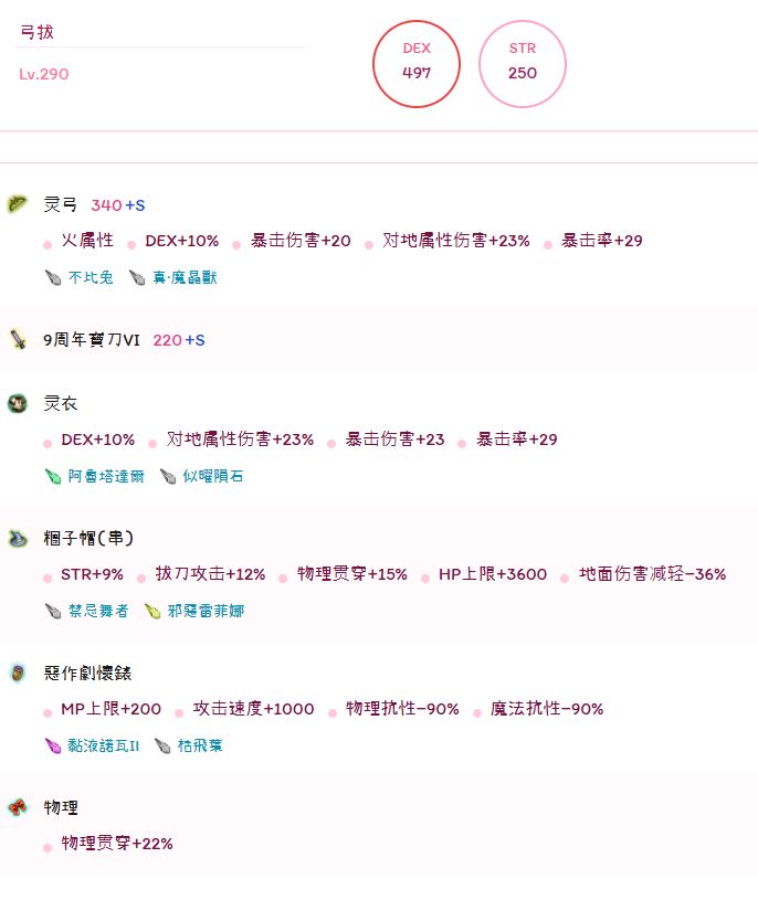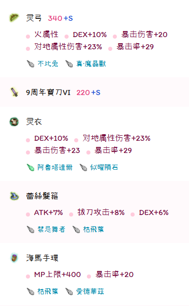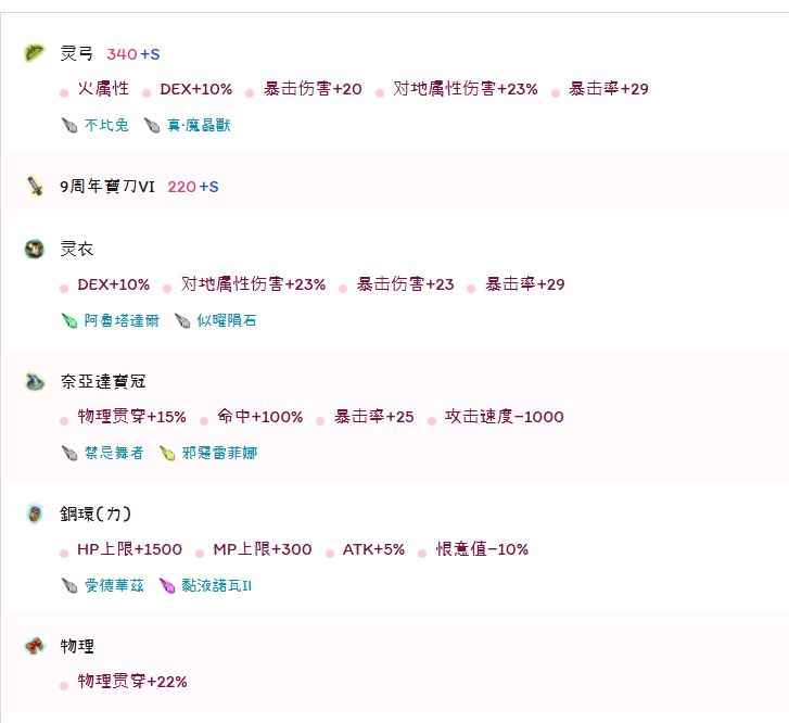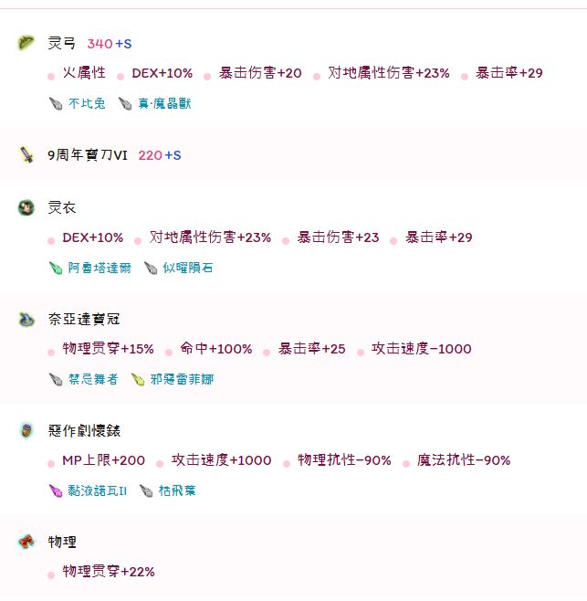 弓的灵巧换成a的话伤害会高,不玩命中的话可以直接附atk然后用这套