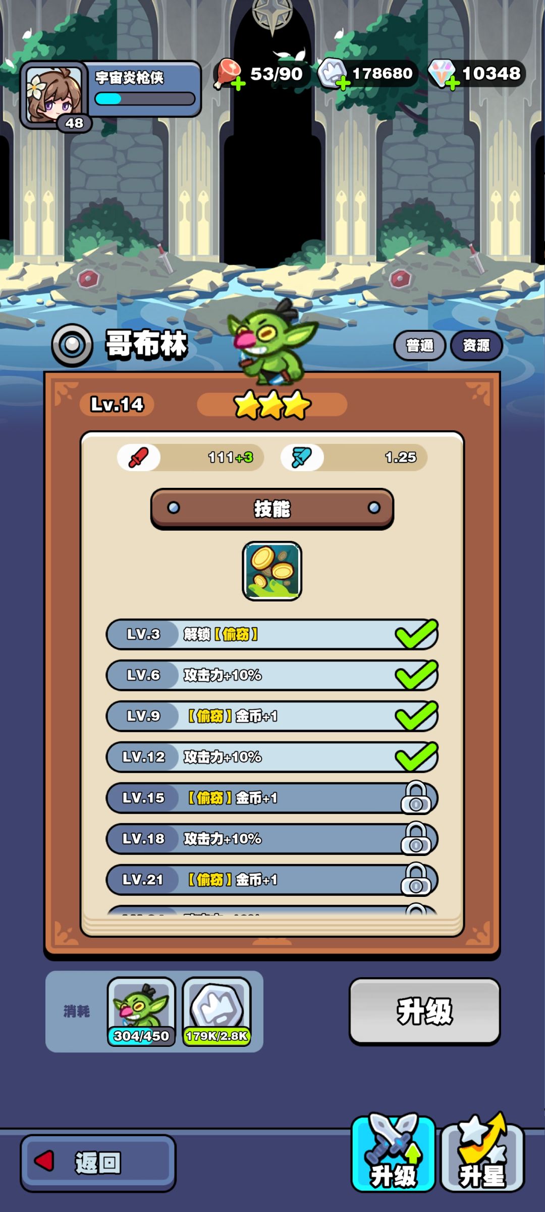 前期打不过,当用白色蓝色的卡打不动小怪了怎么办,一个进阶小技巧,前面200块钱召唤,保留哥布林,其他角色合成蓝色,出售蓝色角色,然后去抽卡,抽紫色,金色,这样就能保证前期过渡,反正都过不去就试试运气吧