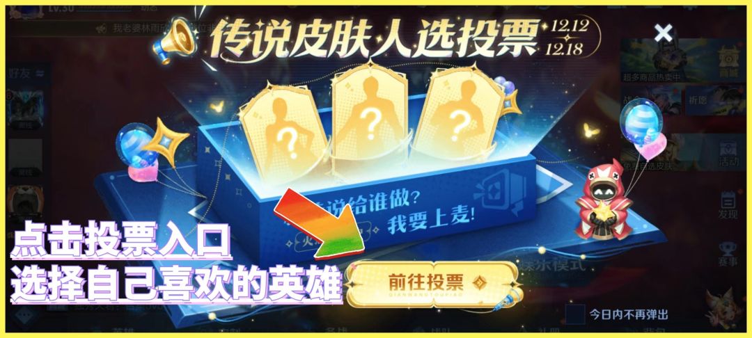 不过为了自己喜欢的英雄投票,大家今天就可以点击大厅界面,前往投票区,投出自己宝贵的一票啦。