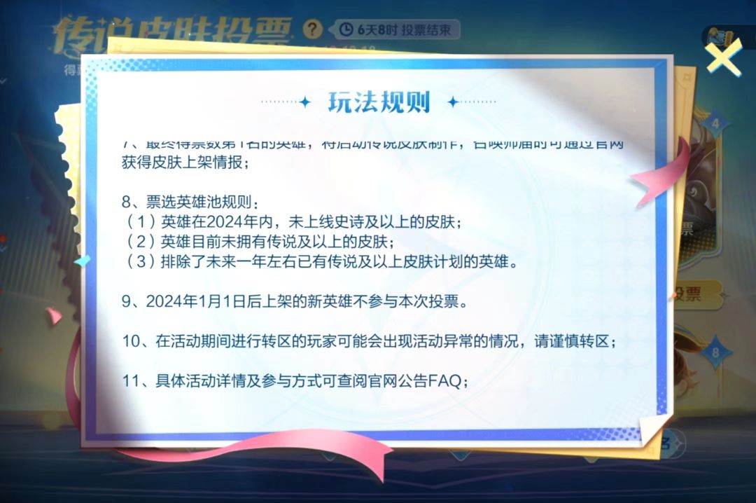 小王紧急更改投票规则,前三名都有新皮肤了