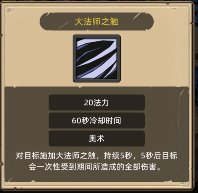 如果满血boss被套上大法师之触后的5秒内,boss血量低于50%,那就是死刑宣判。