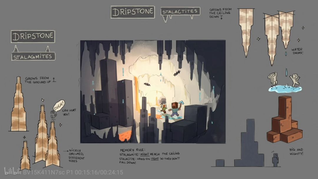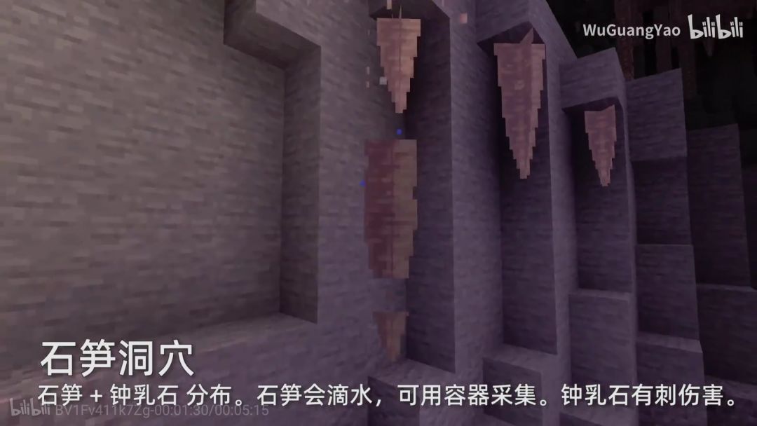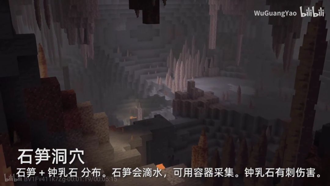 向下的钟乳石如果上面没有方块就会砸下来(多了一种下落方块,狂喜),向上的钟乳石会对掉下来的生物造成伤害。