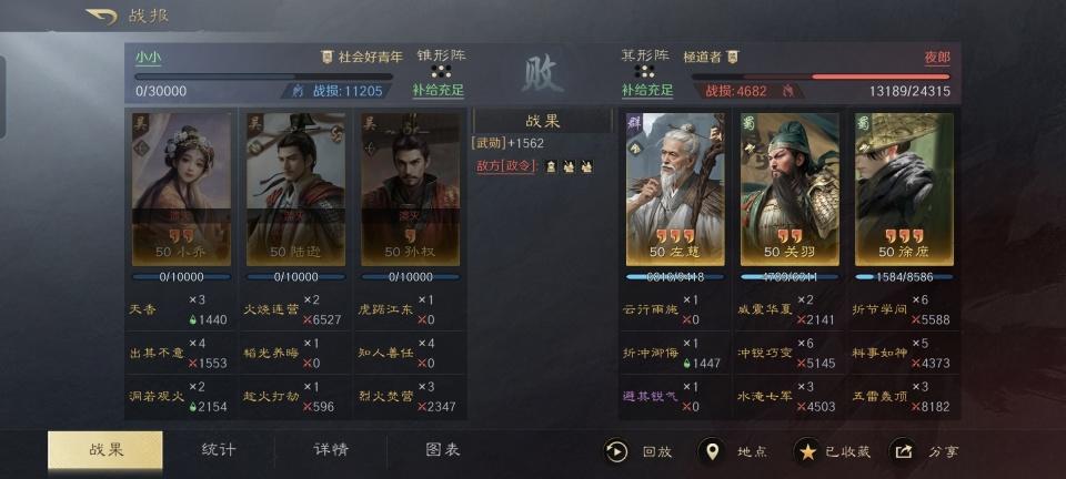 特别鸣谢游戏ID名为“夜郎”的玩家朋友,给本文提供了宝贵的创作素材。他利用麾下的左慈、关羽和徐庶摆出箕形阵,在兵力处于劣势的情况下,半场时间打跪了孙小陆。当中的作战思路,在我看来还是有一定借鉴价值的,故而专门分享出来给大家。