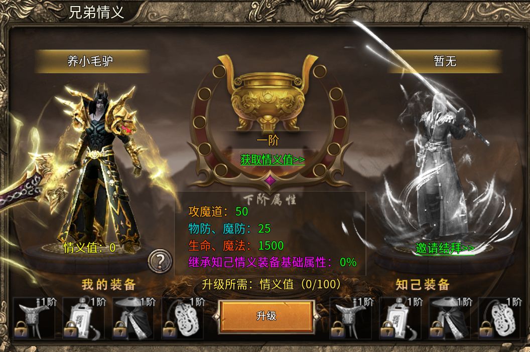 2、结义双方割泡断义后情谊值不再共享,情义等级清零,可重新升级没激活属性