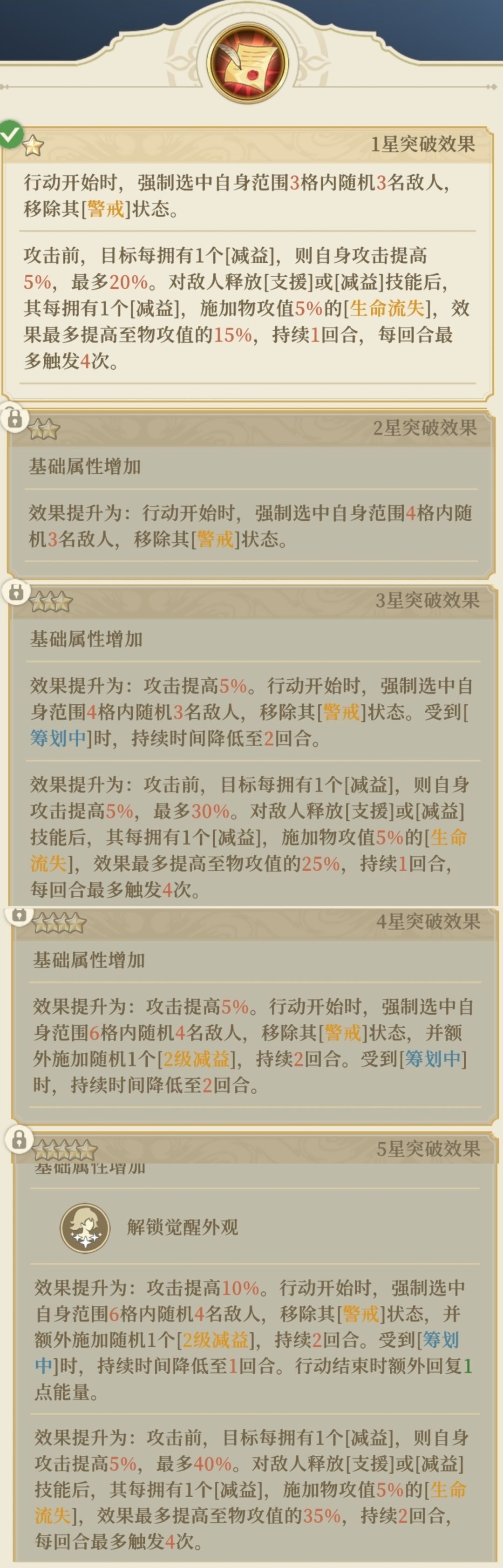 4、debuff【筹划中】类似小姐头的疲惫,星级越高,debuff【筹划中】持续时间越短。