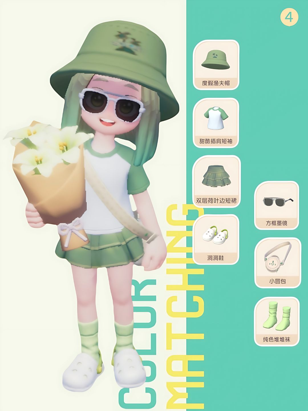 第④套👉🏻绿色×白色💚干净利落慵懒风穿搭