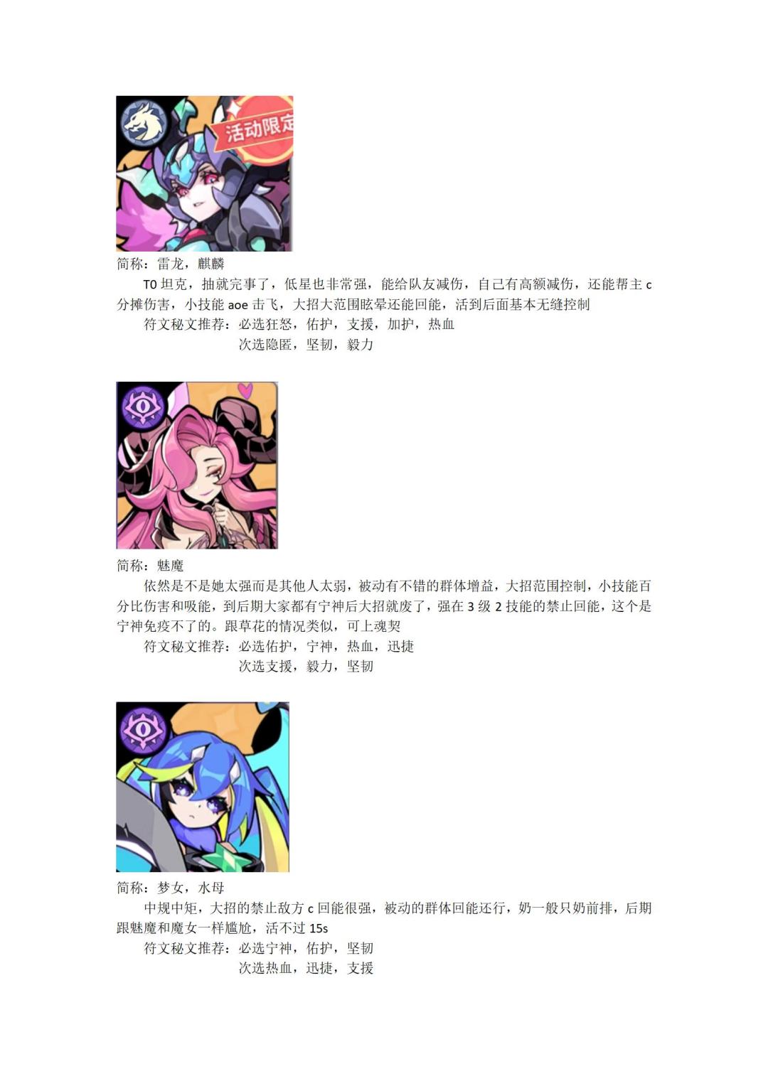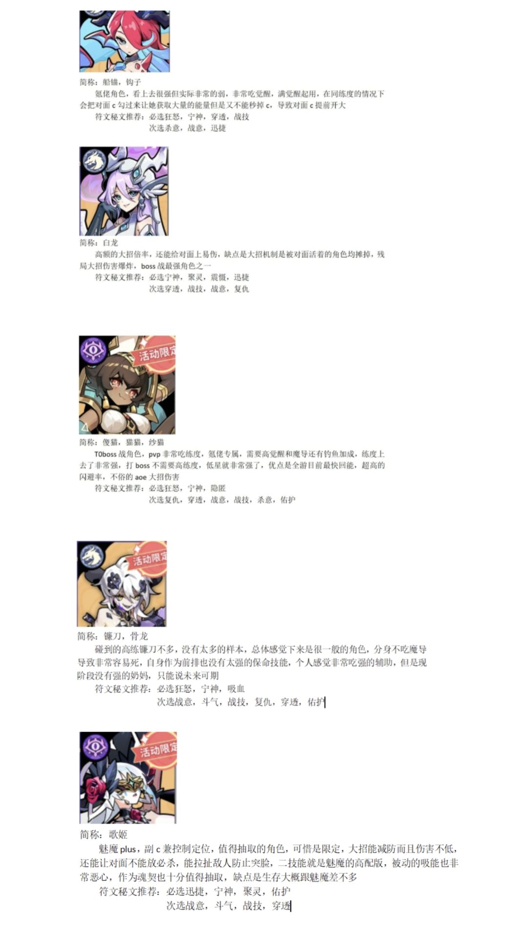 角色评价 (4.11更新歌姬)