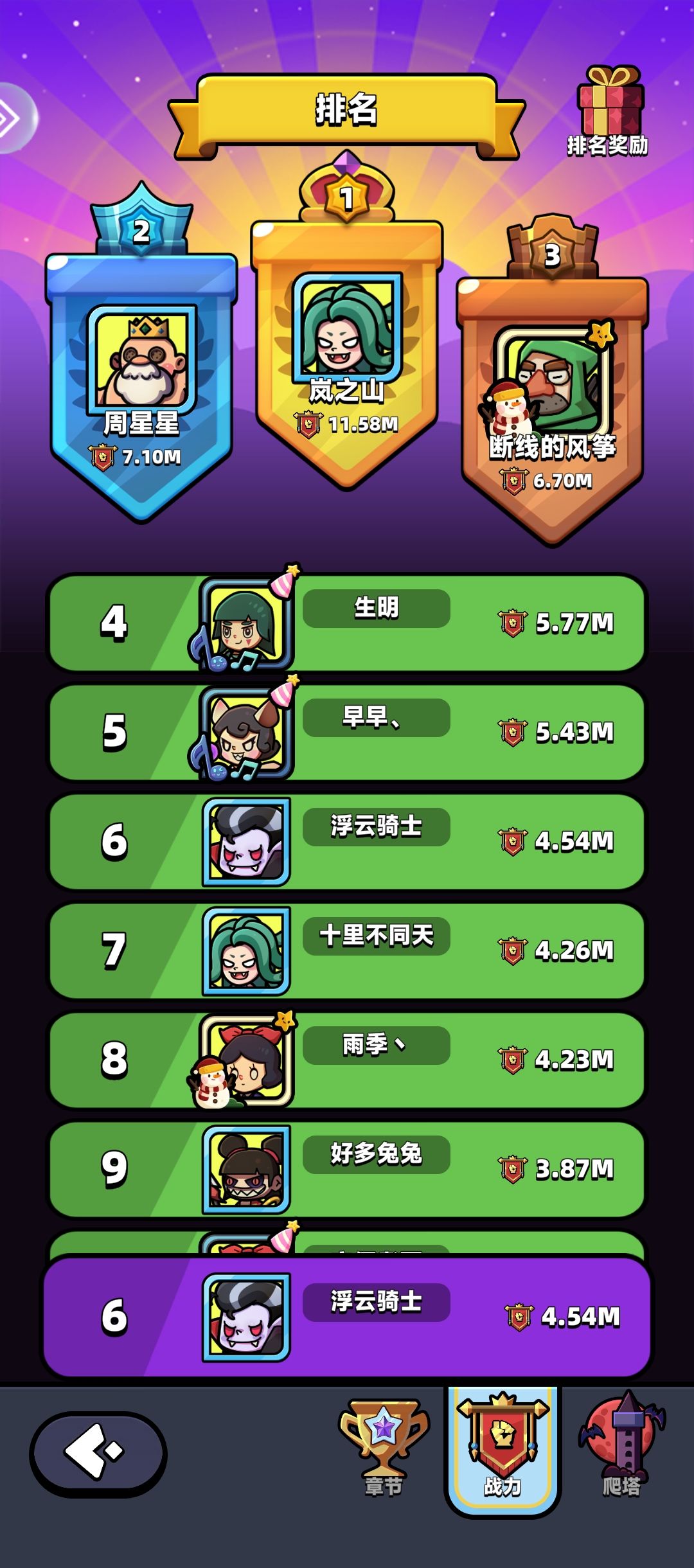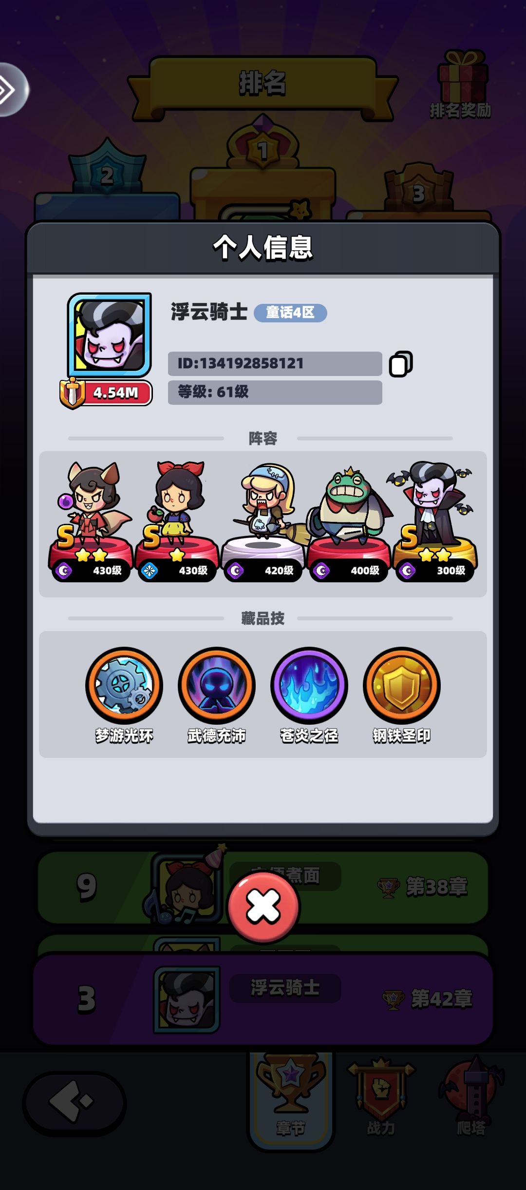 本人4区月卡党,推图榜第三,战力第六,前后大佬战力巨大,全靠妲己! #童话冒险团