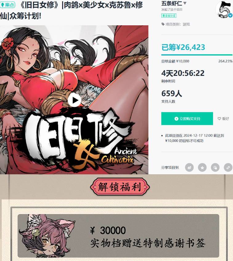 《旧日女修》是一款结合Roguelike+塔防的修仙克苏鲁美少女游戏。我们自上次内测后迭代了几个版本,欢迎各位道友前来赏光,如果能来摩点支持下就更好了,毕竟倒计时4天后就结束了,凑齐档位咱就福利发车喽:实物档的朋友们都会收到特制的辐射票书签滴~