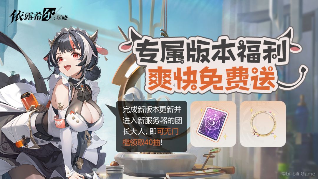 新版本即将上线,艾瓦格联盟特地为团长准备了更新福利,完成新版本更新并进入新服务器的团长大人,即可无门槛领取40抽和限定头像框~