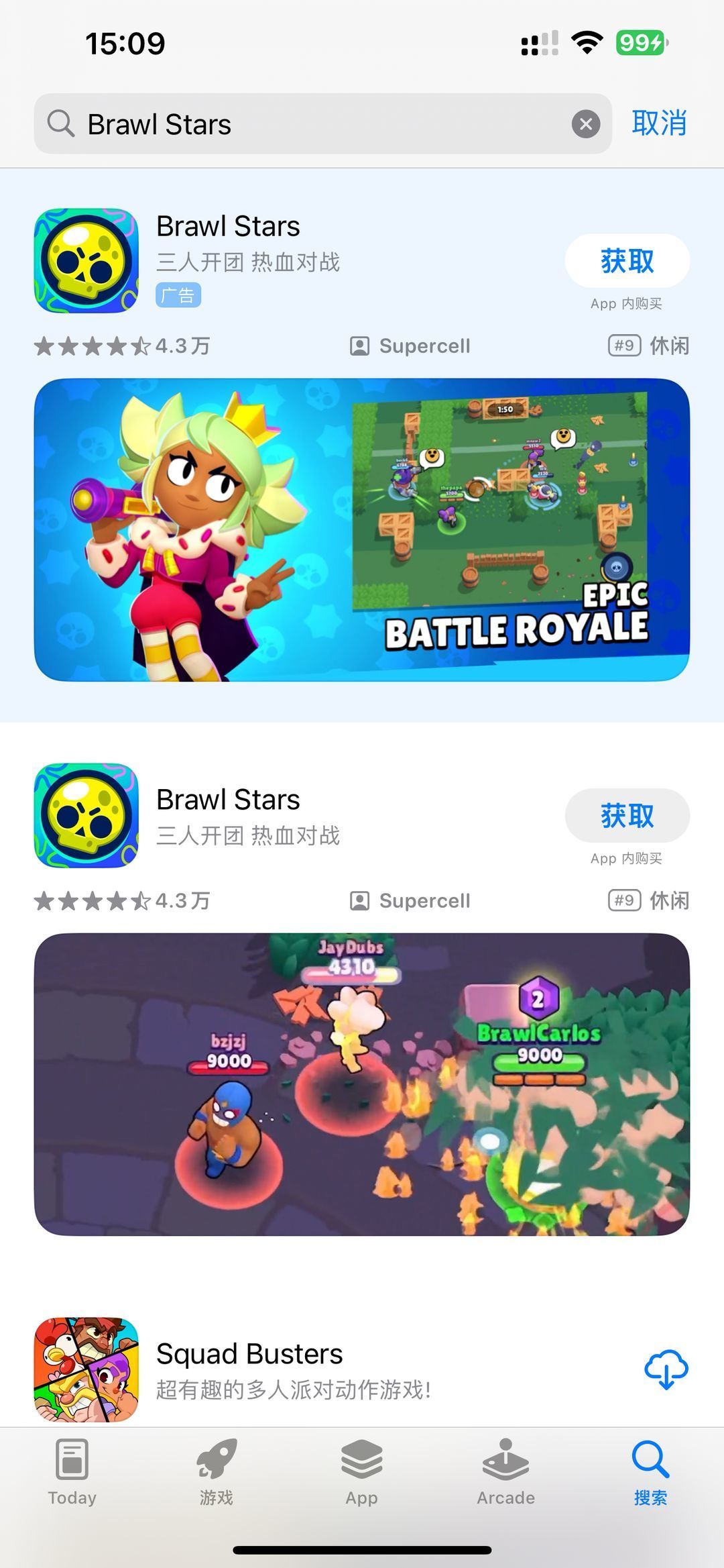 第三步:登录外区Apple ID后,搜索【荒野乱斗】或者【Brawl Stars】即可下载游戏哦!(这里以港区为例)