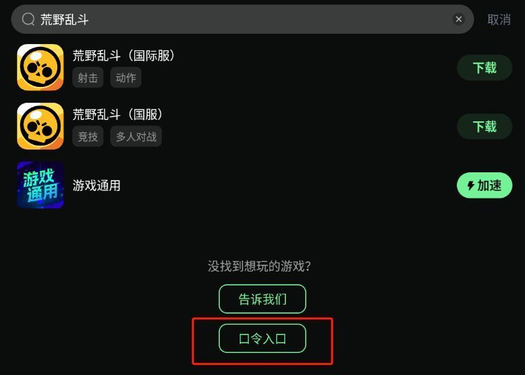 第三步:在奇游内搜索【荒野乱斗国际服】即可下载游戏(如果提示游戏未安装,则说明奇游版本不对哦~)