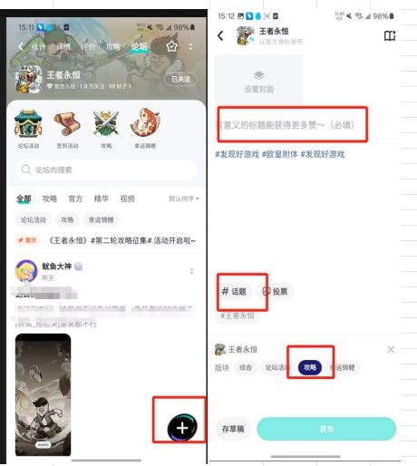 ②录制完成后在论坛右下方点击+号,在“攻略”板块中发布游戏视频即可领取奖励~