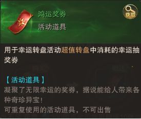 活动开启时间内,会开放超值转盘,勇士们可以使用鸿运奖券进行抽奖,售价30钻石一张。