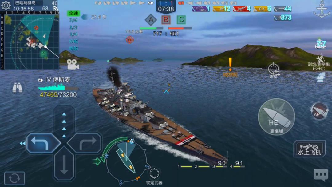 俾斯麦战列舰主炮威力虽然强大,但主炮装填却要24秒,这样的装填时间有点长。我们知道俾斯麦的副炮射程为7km,如果在7km外进行炮击,待主炮发射完毕准备进行下一轮齐射这段时间,战舰没有任何火力输出,而如果这个时候,敌军巡洋舰或者驱逐舰在俾斯麦号战列舰后方以45度斜角向俾斯麦战列舰,高速航行并进行攻击或者释放鱼雷的话,俾斯麦战列舰很可能被命中,而战舰无法进行任何反击措施。如果俾斯麦号战列舰主炮装填在15秒左右,便可实现一定程度的反击。因此在实战中,在主炮发射之后,要密切注意敌军巡洋舰和驱逐舰的动向,及时调整航向。