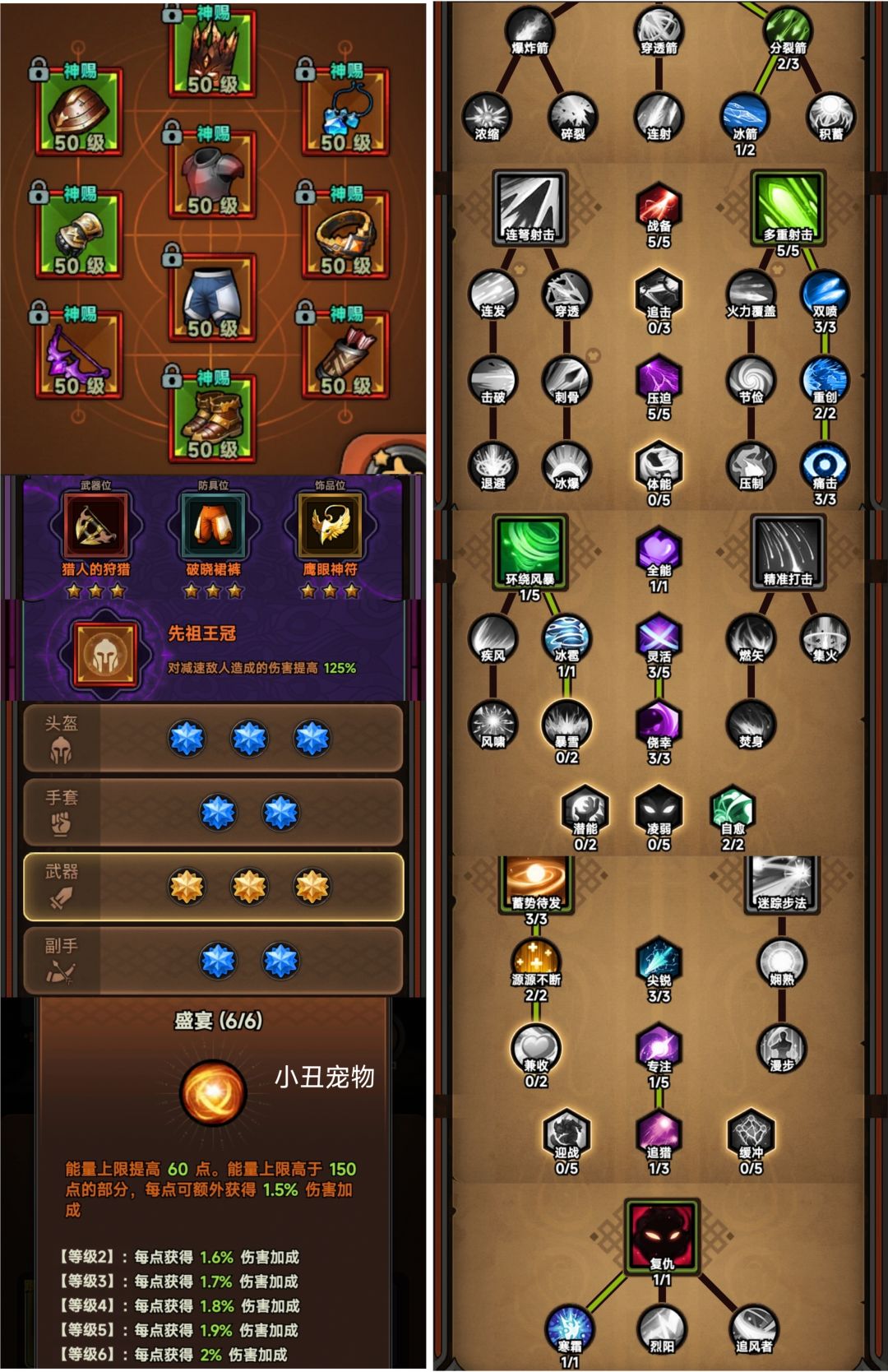 然后是针对冲层、速刷、世界boss三个方向的技能和配装——
