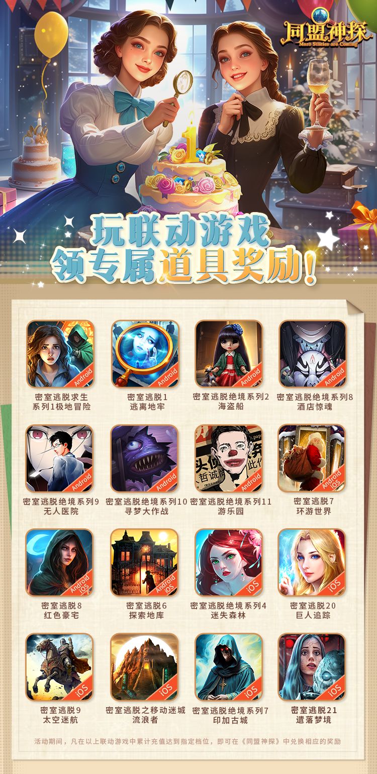 同盟神探一周年庆典已经展开,为了回馈各位大侦探的支持,除了已经开启的联动游戏好礼活动以外,我们又来发放额外的福利啦~~