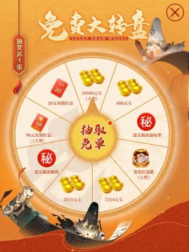 这次免单服,小狐狸准备好了“免单券”,可以在活动中抽取20000元宝、八周年专属头像框、变装任选箱等超多好物免单哟!