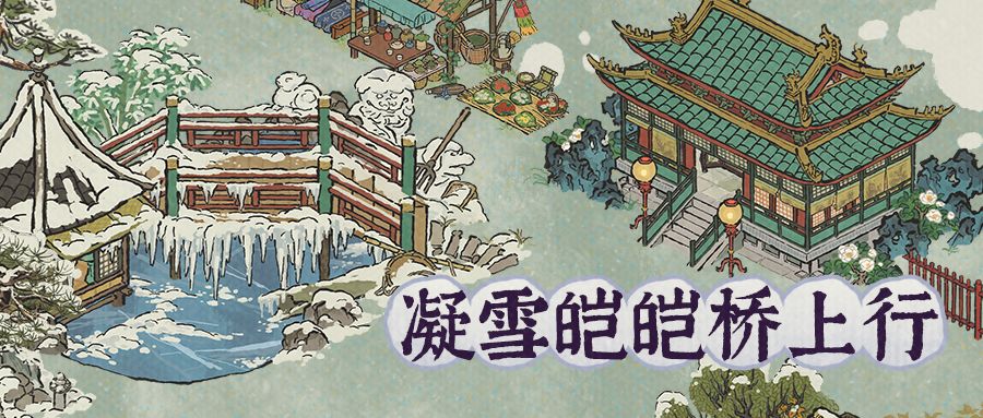 全新3*4动态建筑「凝雪桥」入驻江南!奖池内含建筑「猎人小屋」、建筑「妈祖雕像」、「金画轴*10」、「冬日小景礼盒」等好礼,第一次抽奖是免费的,知府们记得来试试手气!