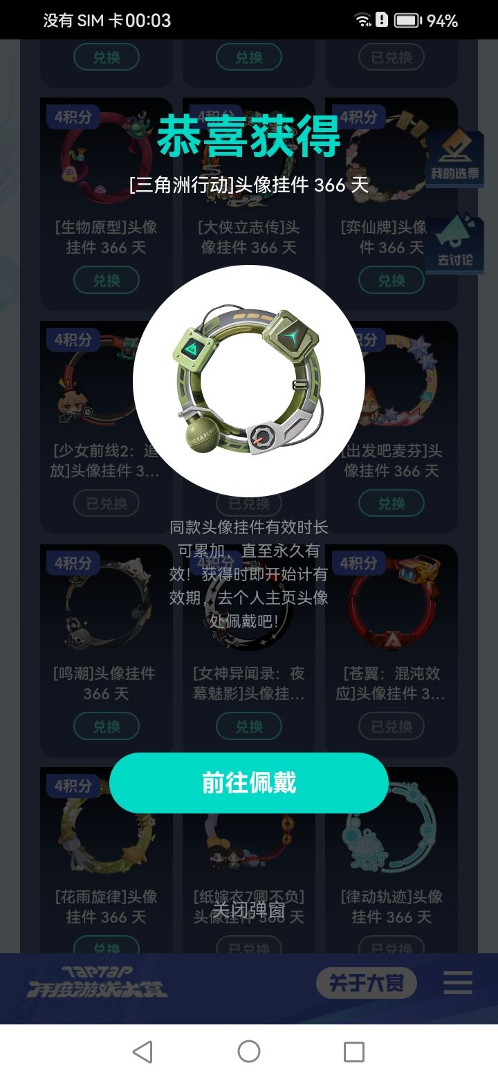 今天是投票活动第3天啦,依然是拿到4个积分,刚好能兑换一个头像框,今天换了三角洲的头像框,还剩9个头像框就全部兑换完了,还没有拿到的小伙伴们赶紧来参与哦,链接在这里