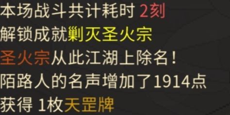 我是走冷皮帮路线,最后要在圣火宗主闭关的时候,去乱杀,然后最后在闭关地方干掉这个宗主,就显示达成剿灭成就。不过很奇怪的是,在我跟这个宗主对话的时候,显示一个冷艳女子和燕罗冲的好感增加了,搞不懂(当时忘记截图了)。